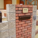 レンガの門柱に銅真鍮表札(和書体)