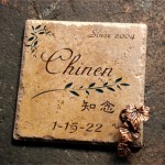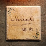 凹凸があって表情が豊かなアンティークタイルに深く文字を刻みました。