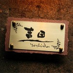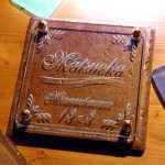 梨地仕上げのいぶし銅に、なごみ書体を刻んだ真鍮を重ねました。