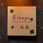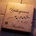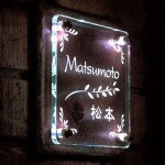 アンティークタイルに彫刻したガラスを重ね銅のクローバーをつけました。 夜になると発光ダイオードが表札を演出します。