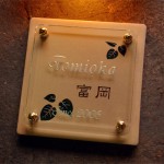 薄いアンティークタイルにお名前を彫刻しガラスを重ねました。 奥行きのある立体的な表札です。 2世帯用に・・・ お引取りありがとうございました。