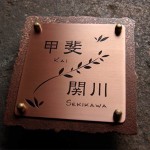 素材⇒ヘアーライン、梨地加工⇒腐食⇒いぶし処理⇒トップコート・・ 仕上げにこだわった銅と真鍮の表札 和書体でデザインしました。