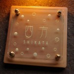 枕木の門柱にガラスだけの表札 手書きのシンプルなデザインでレイアウトしました。 側面は光を彫刻に集めるようにクリスタルカット加工(五面体カット)しています。