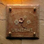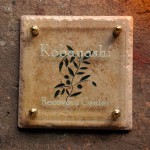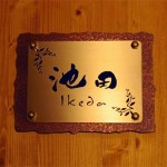 梨地仕上げの銅板にいぶし真鍮を重ねて、和書体を彫刻しました。 表面処理はウレタンのクリアーでトップコート