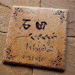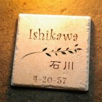 同色で仕上げたアンティークタイル表札です。 凹凸のあるタイルに深く文字を刻みます。