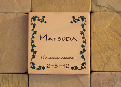 テラコッタ表札 2005/4/23 土曜日2012/8/22 水曜日 by miyasu テラコッタ表札 アイビーをイメージしたデザインでレイアウトしました。 お問い合せ用URL : お問い合せの際に上記URLをコピーして『お問い合せ内容』に貼り付けて頂ければ幸いです
