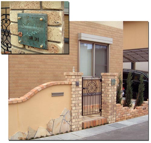 施工写真 ~広島~ 2005/5/16 月曜日2012/8/24 金曜日 by miyasu 施工写真 レンガ積みの門柱とクリスタルガラス表札(緑青色)との組み合わせ お問い合せ用URL : お問い合せの際に上記URLをコピーして『お問い合せ内容』に貼り付けて頂ければ幸いです