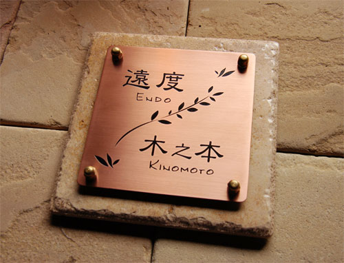 Free-Style表札 アンティークタイルアレンジ 2005/6/20 月曜日2013/4/26 金曜日 by miyasu 銅・真鍮表札 銅 味わいのあるアンティークタイルをベースにFree-Style表札(HAS)で仕上げました。 銅板に文字は腐食(エッチング)し、着色はせずいぶし処理を残して表現しています。 お問い合せ用URL : お問い合せの際に上記URLをコピーして『お問い合せ内容』に貼り付けて頂ければ幸いです