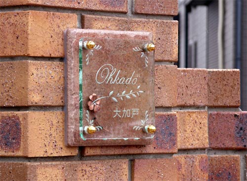 施工写真 ~姫路~ 2005/7/8 金曜日2012/10/2 火曜日 by miyasu 施工写真 LEDアンティークタイルクリスタルガラス銅の飾り レンガの門柱に取り付けていただきました。 クリスタルガラス表札(LED仕様)、埋め込み型銅製ポスト、銅製インターホンカバー 雨の中撮影しました。 ステンレスのベース部にもセメントで目地を入れて仕上げています。 質感の違うインターホン(樹脂製)をいぶし銅で養生 夜間撮影させていただきました。 LED点灯時は彫刻が浮き上がり、綺麗な表情を映します。 昔からそこにあったように素材が馴染んでいます。 お問い合せ用URL : お問い合せの際に上記URLをコピーして『お問い合せ内容』に貼り付けて頂ければ幸いです