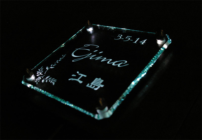 クリスタルガラス表札 LED仕様 側面クリスタルカット 2005/7/17 日曜日2012/8/22 水曜日 by miyasu クリスタルガラス表札【LED仕様】 木とガラスの組み合わせ・・杉板の塀にガラスのみ取り付けます。 側面を五面体に研磨して光の分散を演出します。 暗闇での表情・・・ お問い合せ用URL : お問い合せの際に上記URLをコピーして『お問い合せ内容』に貼り付けて頂ければ幸いです