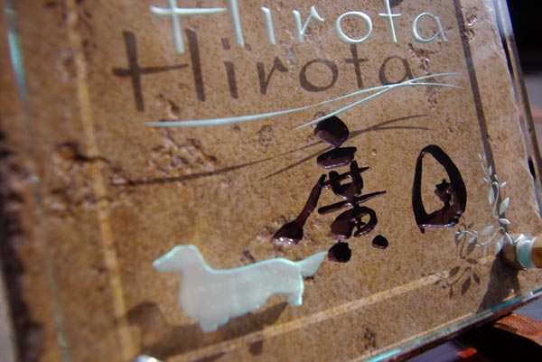 クリスタルガラス表札 和書体 2005/7/20 水曜日2012/9/19 水曜日 by miyasu クリスタルガラス表札 愛犬のシルエットをレイアウトしました。 タイルに手書きの書体(和書体)を深く刻んでウレタン塗装で仕上げます。 お問い合せ用URL : お問い合せの際に上記URLをコピーして『お問い合せ内容』に貼り付けて頂ければ幸いです