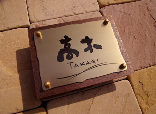銅真鍮表札 和書体 2005/8/9 火曜日2012/9/20 木曜日 by miyasu 銅・真鍮の表札 素材⇒ヘアーライン、梨地加工⇒腐食⇒いぶし処理⇒トップコート・・ 仕上げにこだわった銅と真鍮の表札 和書体でデザインしました。 お問い合せ用URL : お問い合せの際に上記URLをコピーして『お問い合せ内容』に貼り付けて頂ければ幸いです