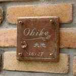 彫金仕上げの銅の小枝を取付けて立体的な表札に仕上げました。