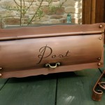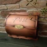 ステンレス製のボックスと一体型の埋め込み型ポスト 裏のボックスはマットブラックのメラニン焼付け塗装です。 銅製の蓋を開けて郵便物を入れます。 取り出しは裏面のステンレスのボックスから・・・