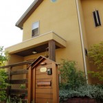 3年前に製作した門柱一式(真鍮表札、銅製ライト、埋め込み型ポスト、イエローバラウのオリジナル門柱) 家や植栽によく馴染んでいました。