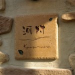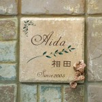 表面に凹凸があって表情のあるアンティークタイルに和書体でレイアウトしました。