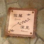 梨地仕上げのいぶし銅に真鍮を重ねあじわいのある表札に仕上げました。 アクセントとして立体的に仕上げた手作りの銅製のバラを溶接し固定しました。