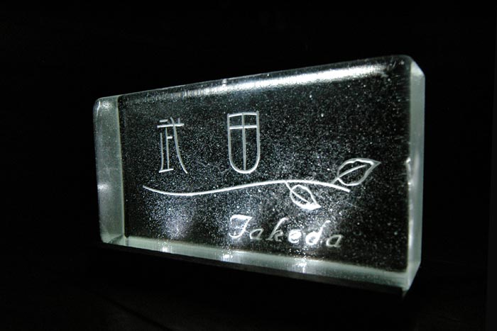 ガラスレンガ表札 2006/5/19 金曜日2012/8/23 木曜日 by miyasu ガラスレンガ表札 素材の存在感を家のシンボルに・・・ 専用LED照明で夜に文字が浮き上がってきます。 お問い合せ用URL : お問い合せの際に上記URLをコピーして『お問い合せ内容』に貼り付けて頂ければ幸いです