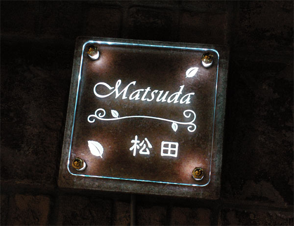 本日、無事に届きました。 夫婦ともども素晴らしい出来映えに感激しています。(^^) HPで拝見する以上に、実物の方が良い感じですっ。(失礼?) 注文したときは、「昼間は文字があまり目立たないかな?」と思いましたが、少しグリーンっぽいので全然問題なさそうです。 もちろん、ライトを点けると文字が浮き上がる感じで、部屋を暗くして何度も点けてしまいました。(^^ゞ 実際に取り付けるのは、家の竣工の関係で1か月程先になりそうですが、今から楽しみです。 本当にありがとうございました。 返信
