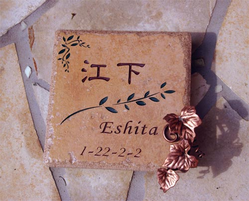 アンティークタイル表札 15×15 2006/6/24 土曜日2012/8/25 土曜日 by miyasu アンティークタイル表札【薄茶色】 15cm角サイズのアンティークタイルに銅製のアイビーを取り付けて・・・ お問い合せ用URL : お問い合せの際に上記URLをコピーして『お問い合せ内容』に貼り付けて頂ければ幸いです
