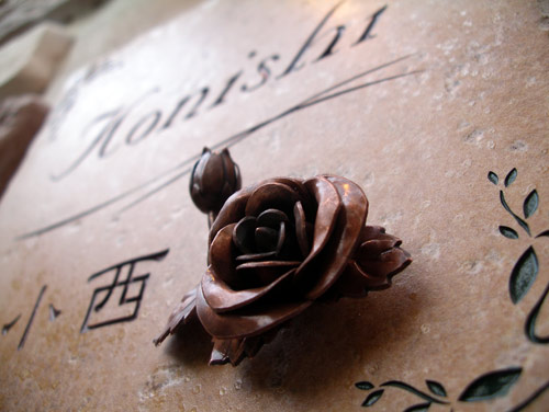 アンティークタイル表札 銅のバラ 2006/6/28 水曜日2012/8/25 土曜日 by miyasu アンティークタイル表札【薄茶色】 彫金した銅板を重ねバラの花を作りました。 アンティークタイル表札のアクセントに・・・ デザインレイアウトにこだわりました。 お問い合せ用URL : お問い合せの際に上記URLをコピーして『お問い合せ内容』に貼り付けて頂ければ幸いです