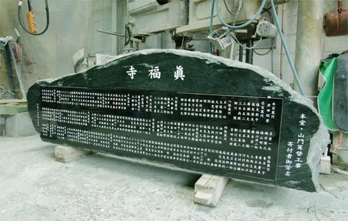 石碑製作 part2 2006/10/12 木曜日2012/8/23 木曜日 by miyasu ㈱広野鉄工所 彫刻した黒御影石を青石に嵌め込みました。 青石(徳島産)は20mm掘りこんで表面を研磨仕上しました。 現場で据付して完成です。イメージ通りの仕上がりです。 据付作業 完工しました。 多くの方々にご協力いただきイメージをカタチにすることが出来ました。 本当に有難うございました。 お問い合せ用URL : お問い合せの際に上記URLをコピーして『お問い合せ内容』に貼り付けて頂ければ幸いです