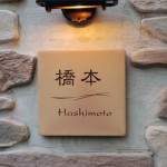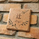 表面に凹凸があって表情豊かなタイルに彫刻した表札です。