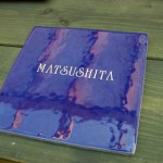 鮮やかなインディゴブルーのタイルにステンレスの切文字を固定した表札・・・ タイルとのコントラストがいい感じ・・・