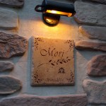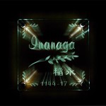 アルカイックタイルにガラスを重ねました。 日中の太陽光でソーラー電源(キャパシタ)を充電(曇りでも十分充電します。) 夜は彫刻した文字が浮き上がり綺麗な表情を映します。 愛知県に送ります