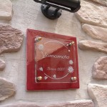 ガラスの立体彫刻は太陽の光で様々な表情を現します ご希望のラブラドールリトリバーをタイルに彫刻しました。 夜になるとLED(発光ダイオード)が自動点灯して彫刻した文字が浮き上がります。 愛知県に送ります。