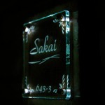 茶色のアンティークタイルをベースに製作しました 側面を五面体にカットして光を分散します(オプション) 夜はLEDが自動発光してガラスの彫刻が浮き上がります。 LED仕様のためのオリーブデザインでレイアウトしました。 神戸 […]