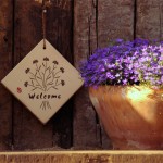 アンティークタイル(薄茶)に漢字を彫刻して立体的に仕上げました。 夜は昼と違う表情で迎えます。 和歌山県に送ります。