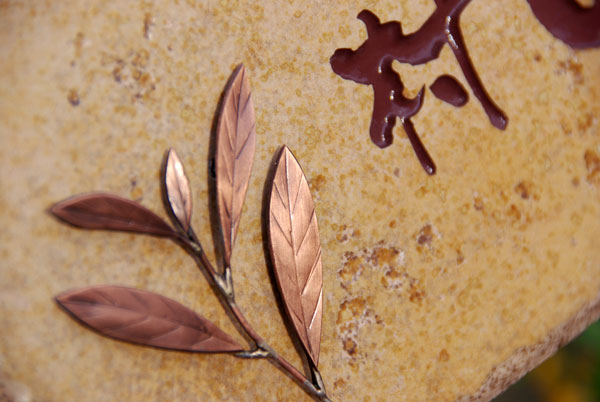 クリスタルガラス表札 銅のオリーブ 2007/6/4 月曜日2012/8/28 火曜日 by miyasu クリスタルガラス表札 アンティークタイルを飾る銅のオリーブを作りました。 ガラスを浮かせて取り付けて立体的に・・・ オリーブに止まる小鳥をデザインしました。 愛知県に送ります。 お問い合せ用URL : お問い合せの際に上記URLをコピーして『お問い合せ内容』に貼り付けて頂ければ幸いです