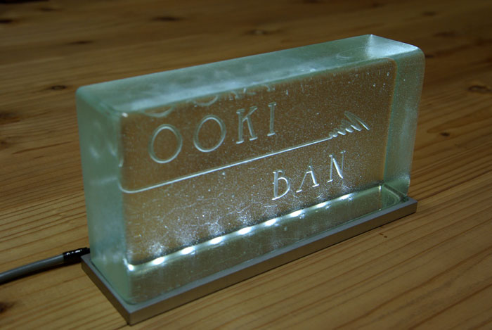 ガラスレンガ表札 専用照明付き 2007/12/12 水曜日2012/8/23 木曜日 by miyasu ガラスレンガ表札 レンガサイズのガラスの塊に二世帯でデザインしました。 オプションのLED専用照明でオブジェのよう表札に・・・・・ 愛知県に送ります。 お問い合せ用URL : お問い合せの際に上記URLをコピーして『お問い合せ内容』に貼り付けて頂ければ幸いです