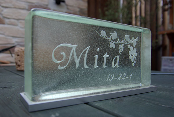 レンガサイズのガラスの塊に葡萄のデザインでデザインしました。