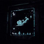 ディープグリーンのフレーバータイルに彫刻したガラスを重ねました。 夜になると自動でLEDが点灯して立体彫刻を浮き上がらせます。 横浜に送ります。