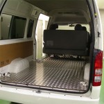 現在ワゴンタイプの車のフロアーを製作中です。 アルミの縞板、フローリング(ウッド調)の2タイプ ”イメージをカタチに・・・” 楽しい作業です。