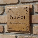薄茶のアンティークタイルにお洒落なフォントでデザインしました。 フランス語で”ようこそ我が家へ” 大阪に送ります。