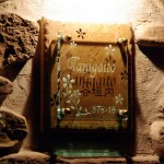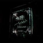 昼間の表情・・・タイルに漢字を彫刻して見えやすくしています。 夜の表情はガラスの彫刻がさりげなく浮き上がります。 特許第3780459号 福島県に送ります。