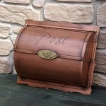 自然素材とよく馴染む銅製の大きなポストです。 使うごとにあじわいが出て来ます。 リーフを付けた銅製のインターホンカバー 岐阜県に送ります。