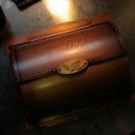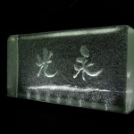 ディープグリーンのフレーバータイルに彫刻したガラスを重ねました。 夜になると自動でLEDが点灯して立体彫刻を浮き上がらせます。 横浜に送ります。