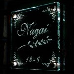 無垢のガラス魂を表札の素材に・・・ 素材感が個性を演出します。 夜はLEDの光で彫刻した文字が浮き上がります。 京都に送ります。