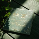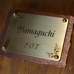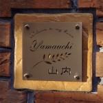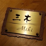 梨地仕上げのいぶし銅に真鍮を重ねた表札です。 愛知県に送ります。