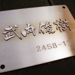 真鍮を使った創作表札を製作中です。 t3mmのカットが出来ました。 表面を研磨して番地を彫刻