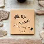 温もりのあるテラコッタ(素焼きの陶板)に深く彫刻、着色しています。 タイルの表面は表札用に研磨加工しています。 福岡県に送ります。