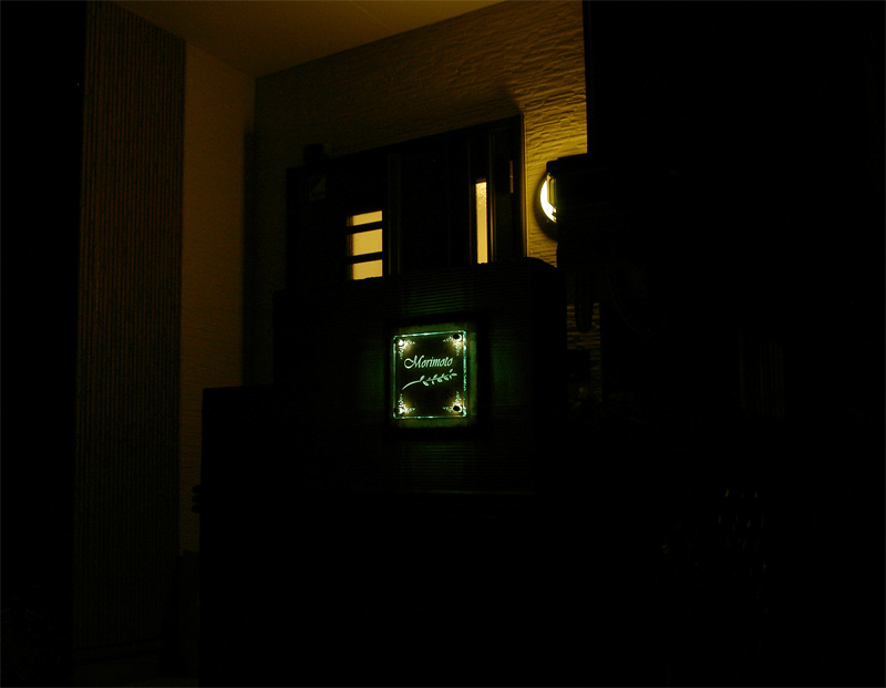 Free-Style表札 LED仕様 施工写真 ~姫路~ 2008/2/22 金曜日2012/8/24 金曜日 by miyasu 施工写真 刷毛引きの門柱に付けていただきました。 昼はベースタイルの素材感を・・・ 夜はガラスの立体彫刻が浮き上がり玄関先を飾ります。 お問い合せ用URL : お問い合せの際に上記URLをコピーして『お問い合せ内容』に貼り付けて頂ければ幸いです