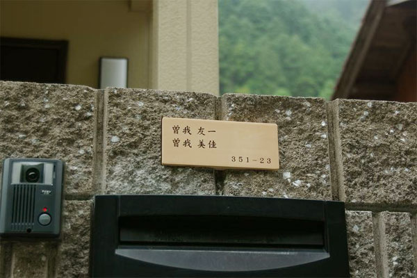 製作いただきました表札は、自然に囲まれた環境の中で、違和感なくさりげなく主張してくれます。