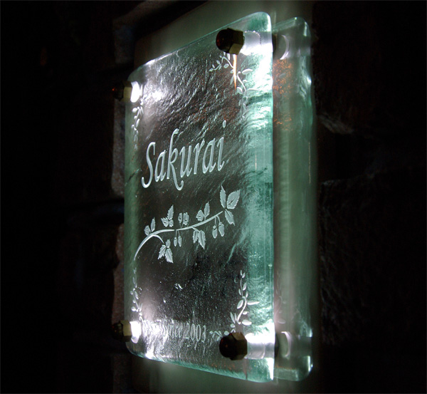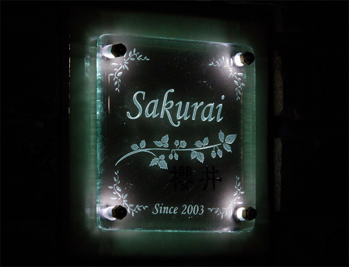Free-Style表札 LED仕様 ソーラー電源 2008/6/26 木曜日2012/8/21 火曜日 by miyasu ガラス表札【LED仕様】《ソーラー電源》 オリジナル”YURAGIガラス”を使って製作しました。 何年も前からヒロノクラフトを見ていただいてありがとうございます。 愛知県に送ります。 お問い合せ用URL : お問い合せの際に上記URLをコピーして『お問い合せ内容』に貼り付けて頂ければ幸いです