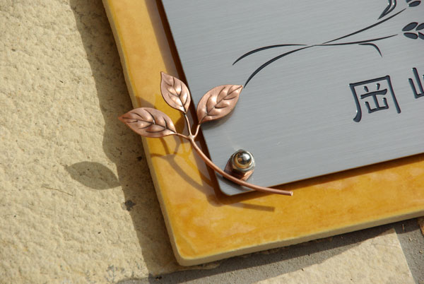 銅のリーフのワンポイント、番地プレートの犬の足跡は最高です!