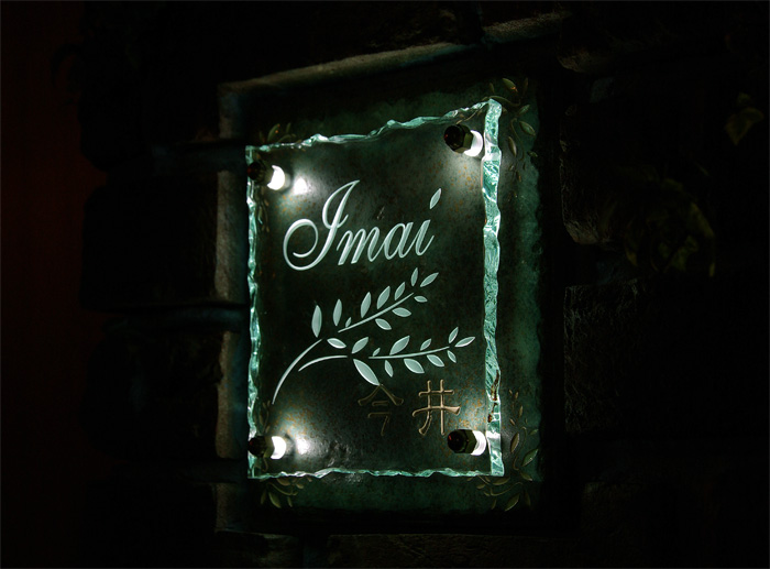 Free-Style表札 アートガラス 2008/7/24 木曜日2012/10/2 火曜日 by miyasu フリースタイル表札 オリジナルアートガラス(ガラスの縁を砕き研磨仕上げ)を緑青のアンティークタイル重ねました。 表情豊かな家のシンボルです。 西宮に送ります。 お問い合せ用URL : お問い合せの際に上記URLをコピーして『お問い合せ内容』に貼り付けて頂ければ幸いです